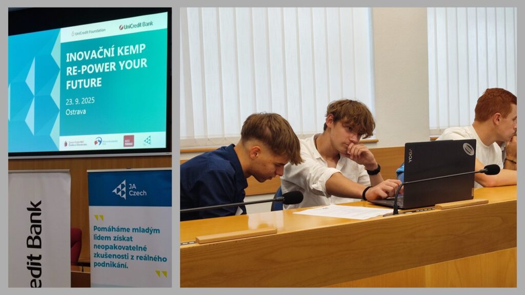 V úterý 23. září se žáci naší školy zúčastnili Inovačního kempu JA Czech. Podnikatelská soutěž se konala na Krajském úřadě Moravskoslezského kraje v Ostravě, kde se sešlo téměř 90 středoškoláků ze 13 různých středních škol ČR.