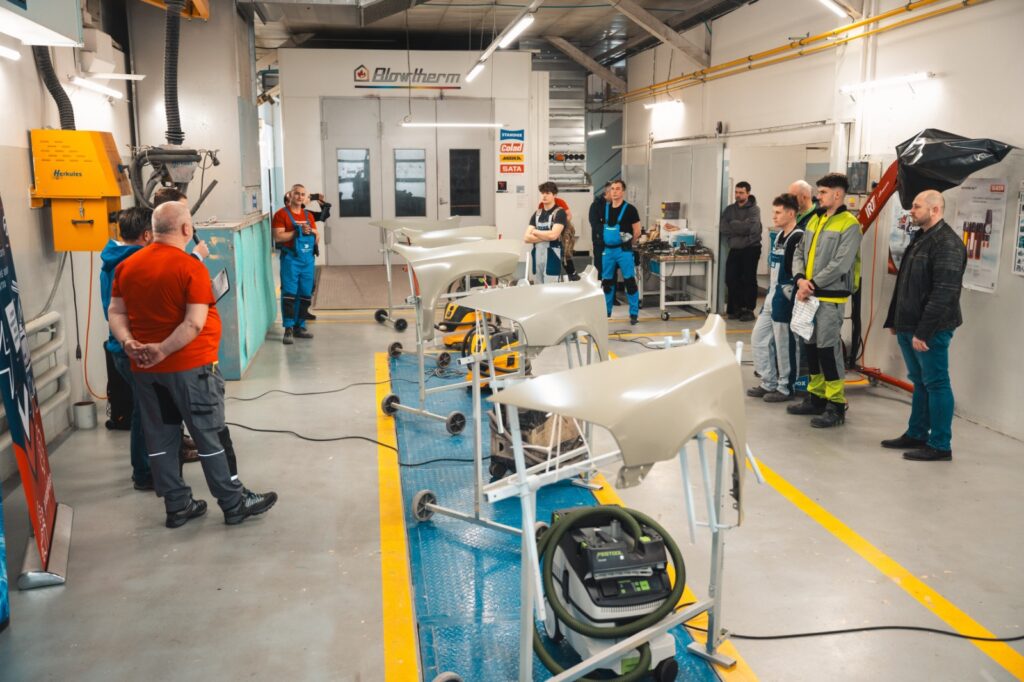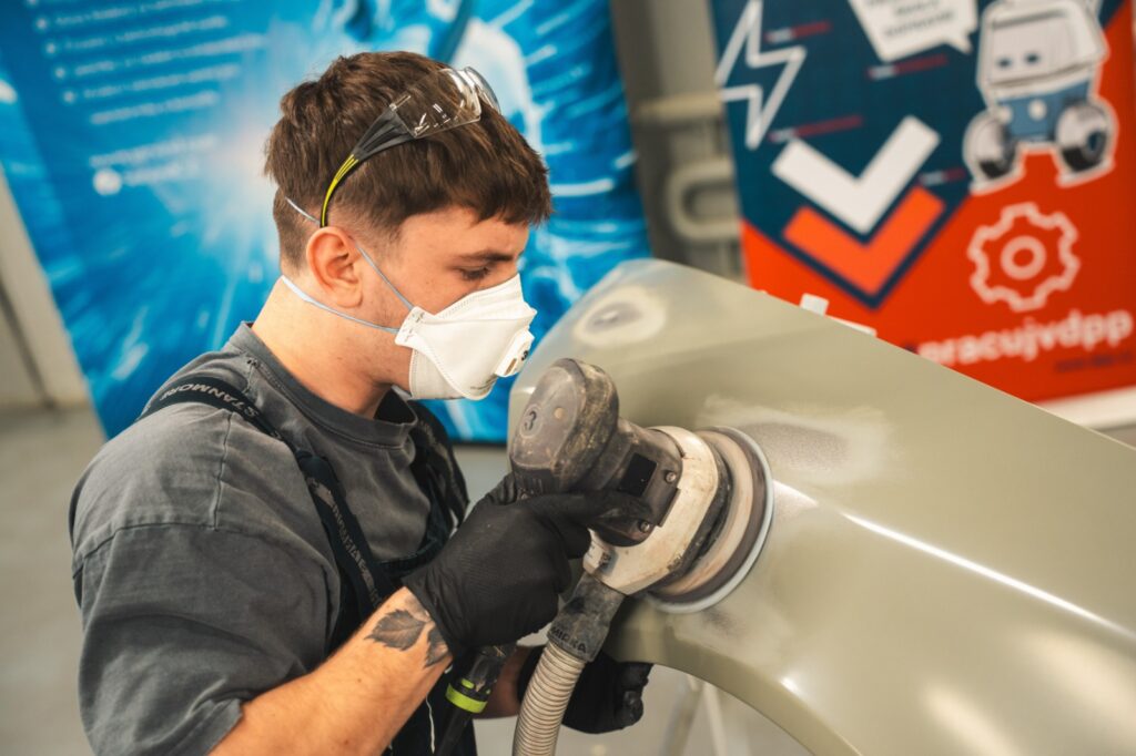 Letošní soutěžní úkol spočíval v lakování nového blatníku s drobným poškozením – od přípravy povrchu přes aplikaci plniče a metalízy až po finální vrstvu bezbarvého laku. Soutěžící pracovali s profesionálními materiály značky Standox a museli prokázat nejen technickou zdatnost, ale i pečlivost, samostatnost a smysl pro detail.